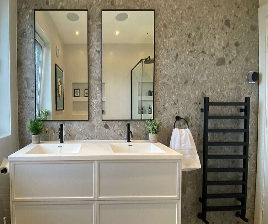If the tiny cloak toilet downstairs was to become an accessible shower room, we desperately needed more space. This was stolen from the store room next door and by partially demolishing a stone wall, we managed to enlarge the old door way just enough to fit an accessible door in! Everything was tight but with precision planning, we managed to carve a beautiful space out of this once dysfunctional tiny room.